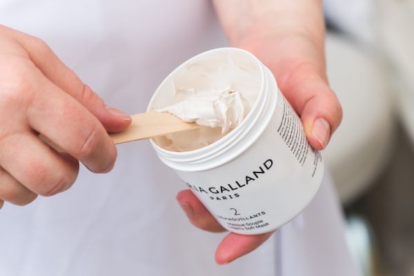 - na obličej, krk a dekolt nanesení masky na bázi alginátu Lumin´Éclat 3/580 s rozjasňujícím komplexem. Masku necháme působit přibližně 10-15 minut